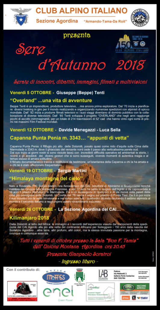 I venerdì di ottobre presso la Sala “Don F. Tamis” dell’ Unione Montana Agordina ore 20.45
